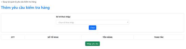 Doanh nghiệp chọn “Yêu cầu kiểm tra hàng” trong thanh điều hướng và chọn nút “Nhập yêu cầu”
