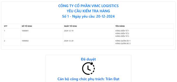 Sau khi được cán bộ công chức duyệt, doanh nghiệp có thể chọn nút “In phiếu yêu cầu chuyển tàu” để in ra phiếu