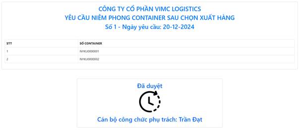 Sau khi được cán bộ công chức duyệt, container sẽ được tiến hành niêm phong với seal niêm phong mới